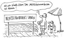 Zitat:Den Eheleuten Horst und Heidi E. gelingt der Anschluss einer Kettenschaltung von 96 Halogenfilmleuchten durch sämtliche Bäume ihres Obstgartens an das Drehstromnetz. Teile der heimischen Vogelwelt beginnen verwirrt mit dem Nestbau.